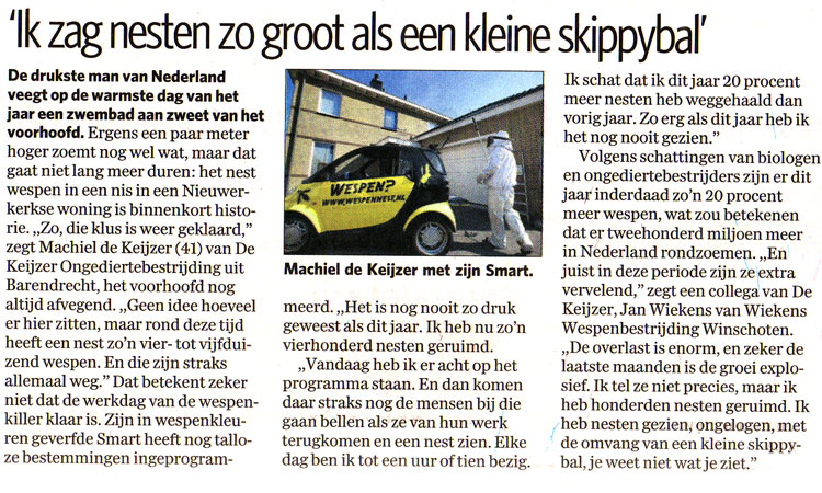De Keijzer Ongedierte Bestrijding stond dinsdag 11 augustus in het Algemeen Dagblad.